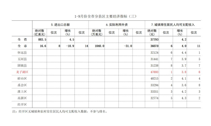 前三季度,城镇常住居民人均可支配收入47693元,居全市第1位;增长3.8%,低于全市平均增速0.2个百分点,居全市第6位;低于全省平均增速0.4个百分点;较上年同期降低1.3个百分点,前移1位。