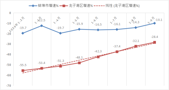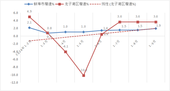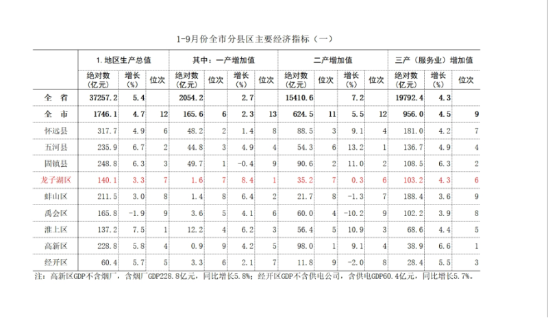 前三季度,GDP完成140.1亿元,居全市第6位;增长3.3%,低于全市平均增速1.4个百分点,居全市第6位;低于全省平均增速2.1个百分点;较上年同期降低3.2个百分点,后移1位。