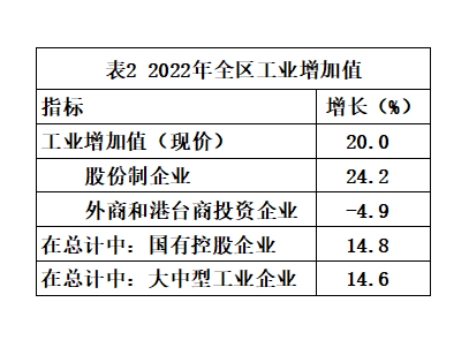 全区22个工业行业中,12个保持增长。非金属矿采选业增长3.29%,食品制造业增长30.88%,纺织服装、服饰业增长12.44%,木材加工和木、竹、藤、棕、草制品业增长62.78%,造纸和纸制品业增长38.8%,印刷和记录媒介复制业增长63.86%,化学原料和化学制品制造业增长4.65%,专用设备制造业增长137.03%,汽车制造业增长10.42%,铁路、船舶、航空航天和其他运输设备增长26.26%,电气机械和器材制造业增长22.72%,仪器仪表制造业增长4.03%。高技术产业增加值增长14.1%,战略性新兴产业产值增长9.5%。