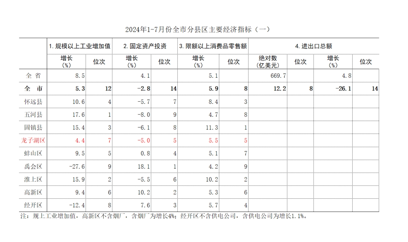 【月度统计和解读】2024年龙子湖区1-7月经济运行简报