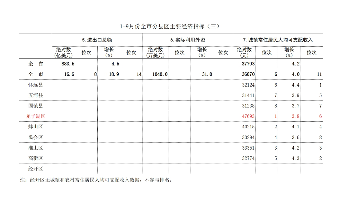 前三季度,城镇常住居民人均可支配收入47693元,居全市第1位;增长3.8%,低于全市平均增速0.2个百分点,居全市第6位;低于全省平均增速0.4个百分点;较上年同期降低1.3个百分点,前移1位。