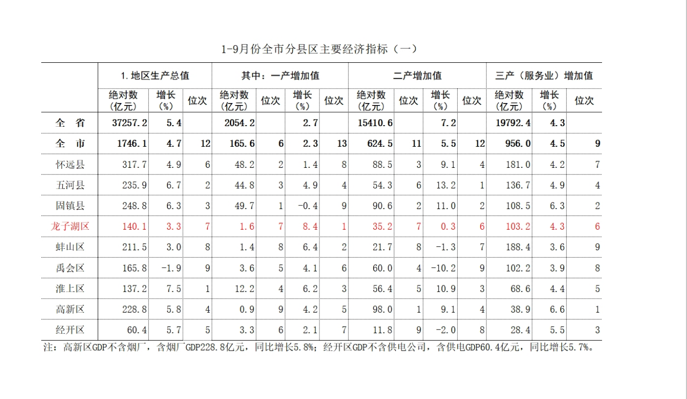 【月度统计和解读】2024年龙子湖区前三季度经济运行简报