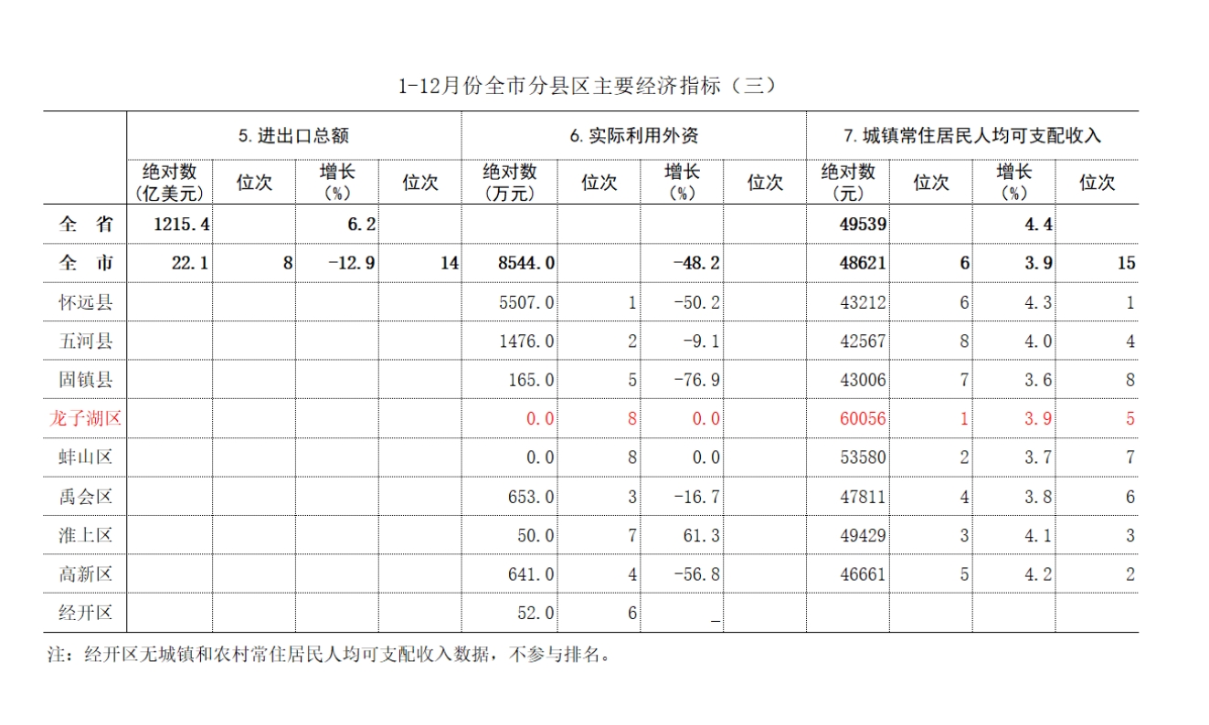 1-12月,城镇常住居民人均可支配收入60056元,居全市第1位;增长3.9%,与全市平均增速持平,居全市第5位;低于全省平均增速0.5个百分点;较上年同期降低0.1个百分点,前移1位。