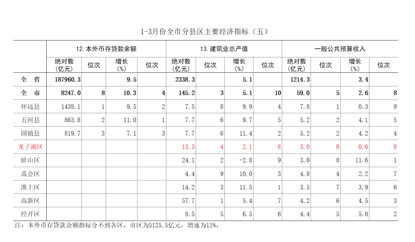 本外币存贷款指标分不到各区,市区人民币存贷款余额为5125.5亿元,增长11%。
