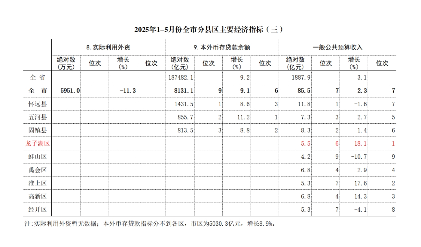本外币存贷款指标分不到各区,市区存贷款余额为5030.3亿元,增长8.9%。
