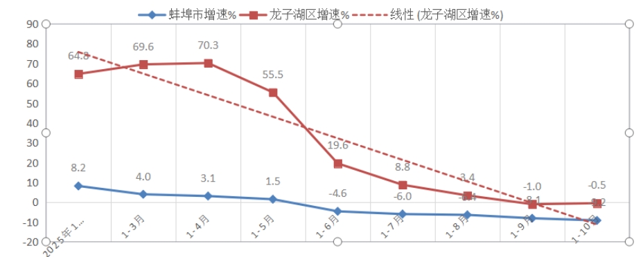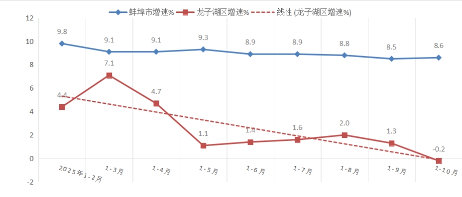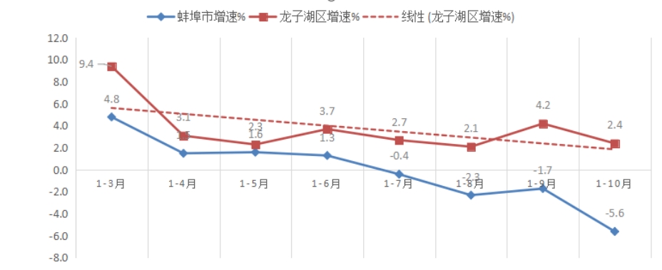 1-10月,规上工业增加值降低0.2%,低于全市平均增速8.8个百分点,居全市第9位;低于全省平均增速9.3个百分点;较上年同期降低3.5个百分点,位次后移2位。