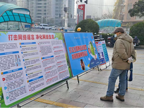根据市委网信办的统一安排部署,为持续提升广大网民对网络谣言和不良信息的辨识、举报能力,共同营造清朗有序的网络环境,2025年12月18日上午,龙子湖区委网信办联合区公安分局网安大队在大润发超市广场组织开展了网络举报辟谣主题宣传活动。