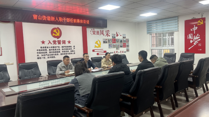 近日,曹山街道举行新入职干部任前集体谈话会。街道党工委领导、党建办负责同志对新入职干部进行任前集体谈话。