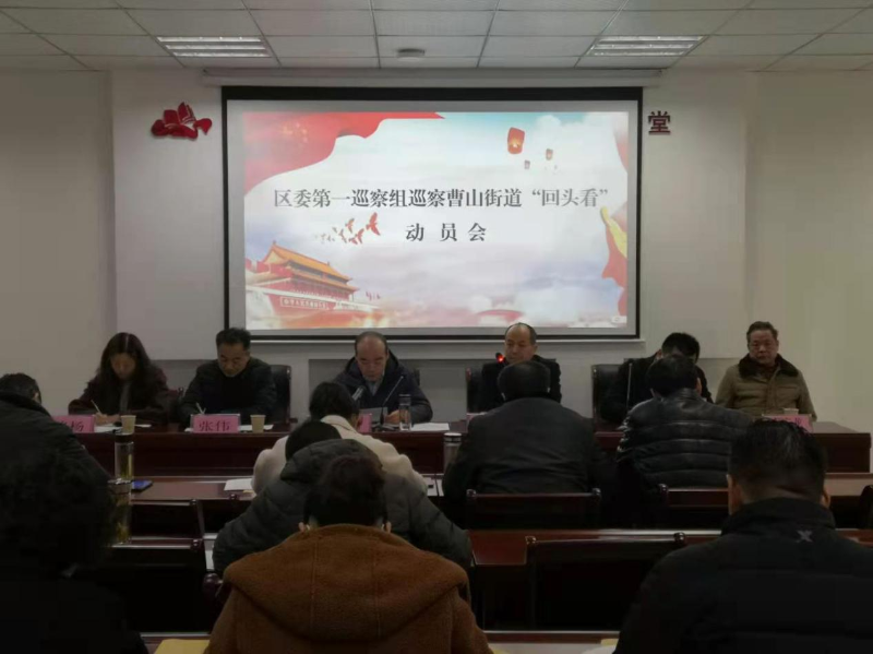 3月4日上午,区委巡察第一巡察组召开对曹山街道巡察“回头看”工作动员会,第一巡察组组长张正洲同志作动员讲话,对巡察“回头看”工作进行部署,曹山街道党工委书记主持会议并作表态发言,街道党政领导班子、各科室负责人、各村居两委成员参加了动员会。