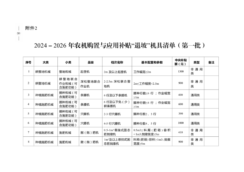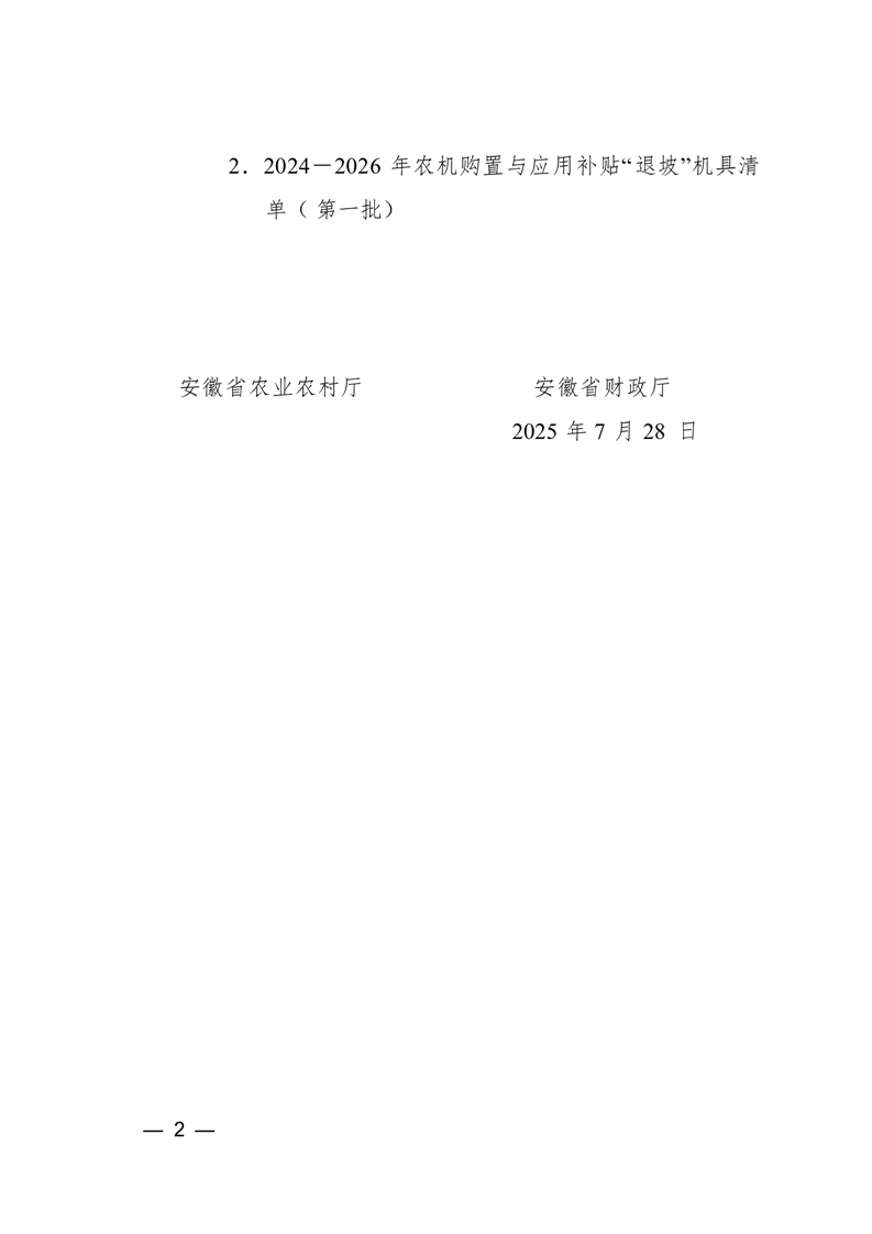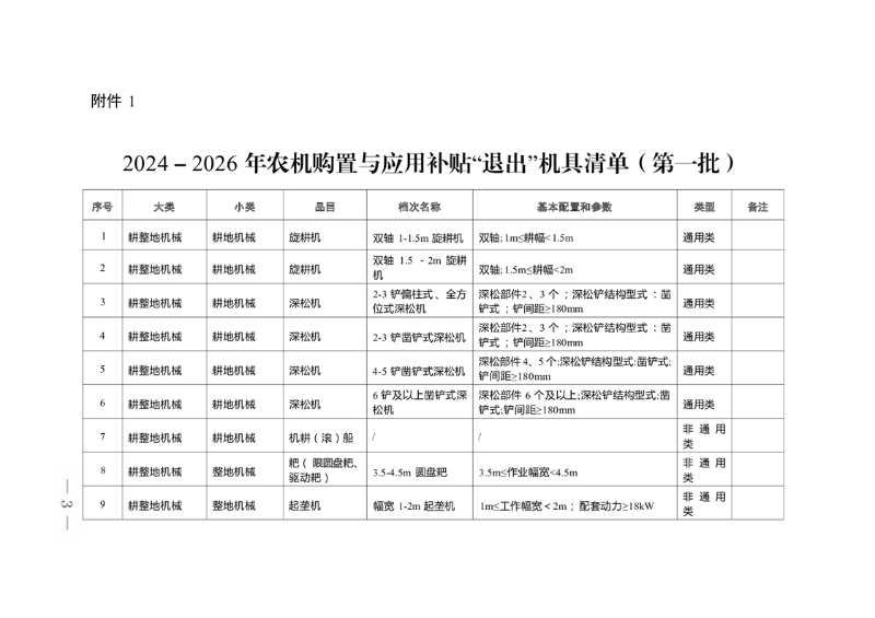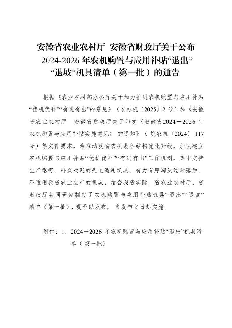 安徽省农业农村厅 安徽省财政厅关于公布2024-2026年农机购置与应用补贴“退出““退坡“机具清单(第一批)的通告