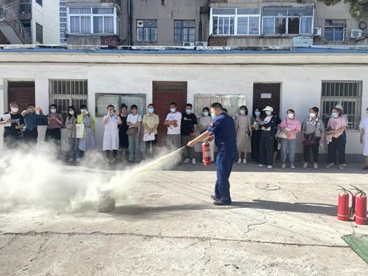 教官详细讲解并规范操作干粉灭火器的使用方法,参训人员逐一进行实操练习使用,基本掌握了正确使用灭火器的技能,提升了火灾发生时自救、互救能力。
