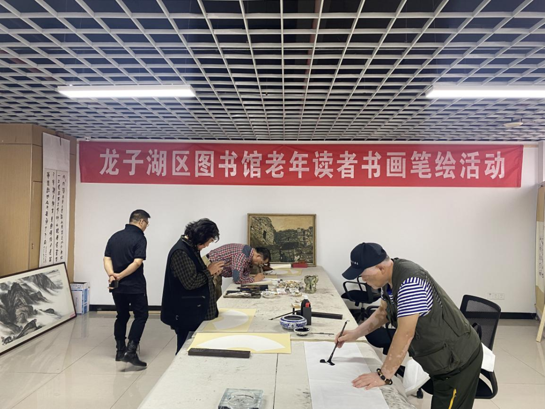 为庆祝中华人民共和国成立74周年,弘扬中华优秀传统文化,丰富老年群体业余精神文化生活,龙子湖区图书馆开展“江淮读书月”老年读者书画笔绘活动。